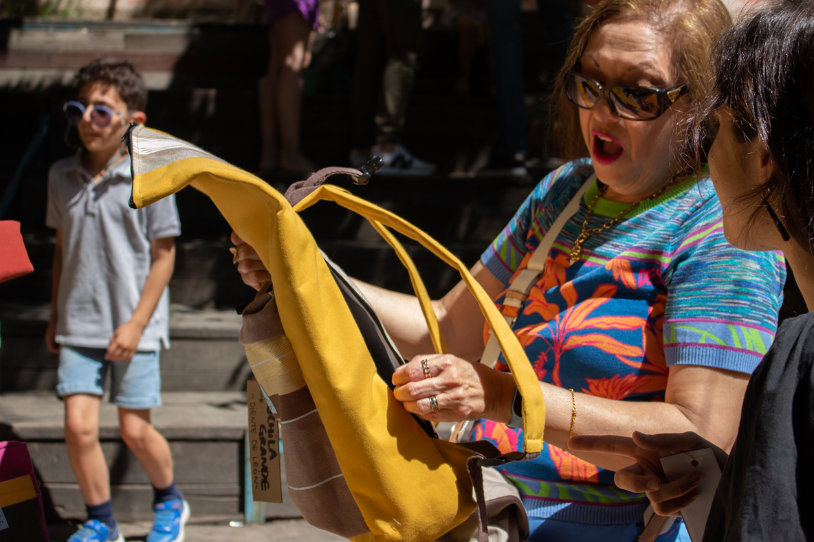 El equipo Galiana, paralelamente a la realización de las postales, seguía recuperando textiles de las fábricas de toldo, diseñando y probando una serie de diseños de mochilas, bolsos, riñoneras y neceseres que completarían esta colección.