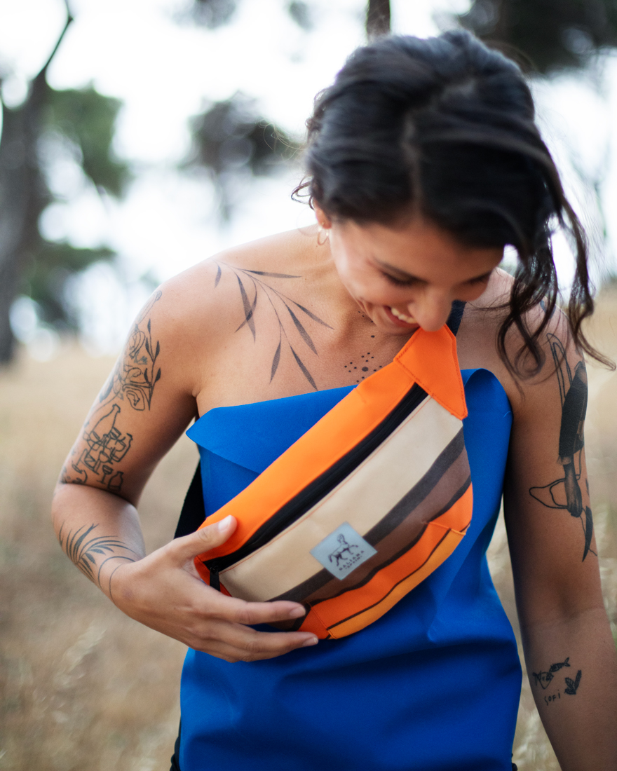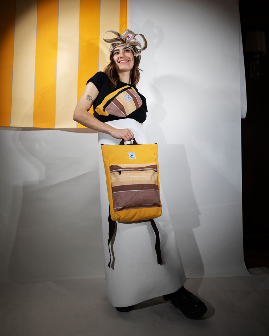 El resultado es una serie limitada de mochilas, bolsos, neceseres y riñoneras realizados con los restos textiles de una fábrica de toldos. Son productos resistentes, ignífugos e impermeables, que si los cuidas, te acompañaran casi toda la vida.