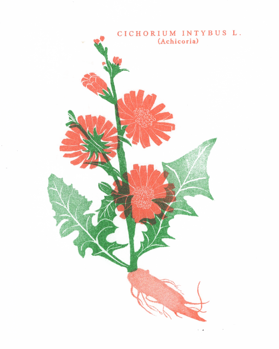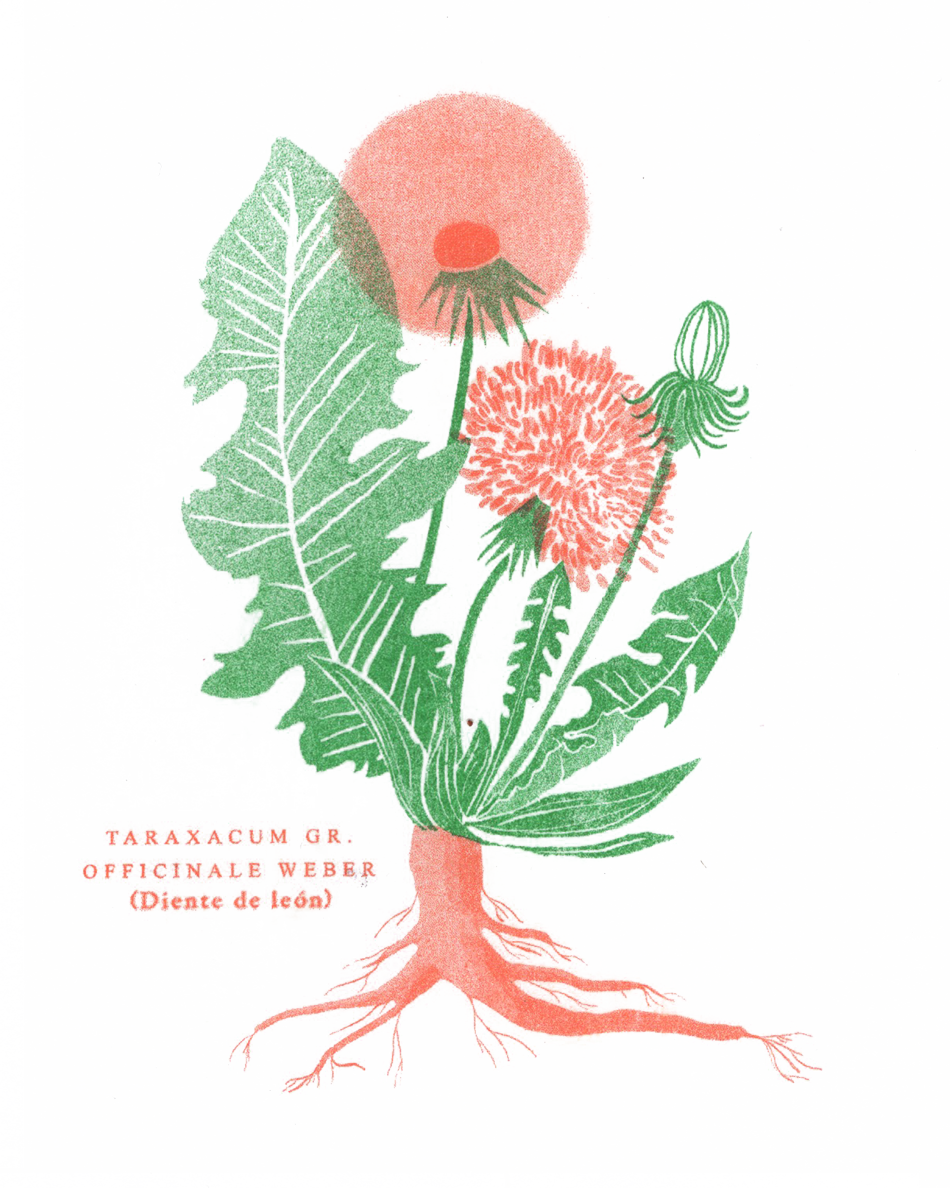 Para construir la historia de esta colección, colaboramos con la etnobotánica Laura Aceituno, de la asociación La Troje y Elena Niñavieja, ilustradora y artista. Juntas generaron una combo mágica, que dió lugar a una serie de postales dedicadas a la Romaza, Achicoria y Diente de León, tres especies comestibles y medicinales para los humanos, y muy beneficiosas para los sustratos dañados.