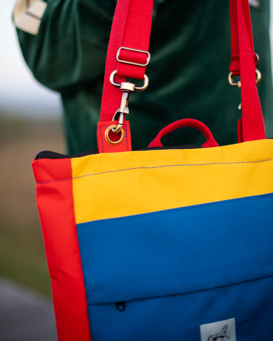 Our convertible backpacks are made from textile waste from an awning factory, a resistant, fire-retardant and waterproof material. Due to the small size of the remnants, our designs are usually very limited, being able to make up limited series with the same fabric. We produce with local workshops, offering a fair salary to the seamstresses with whom we collaborate. We strive to offer a strong and durable product that can accompany you for many years.