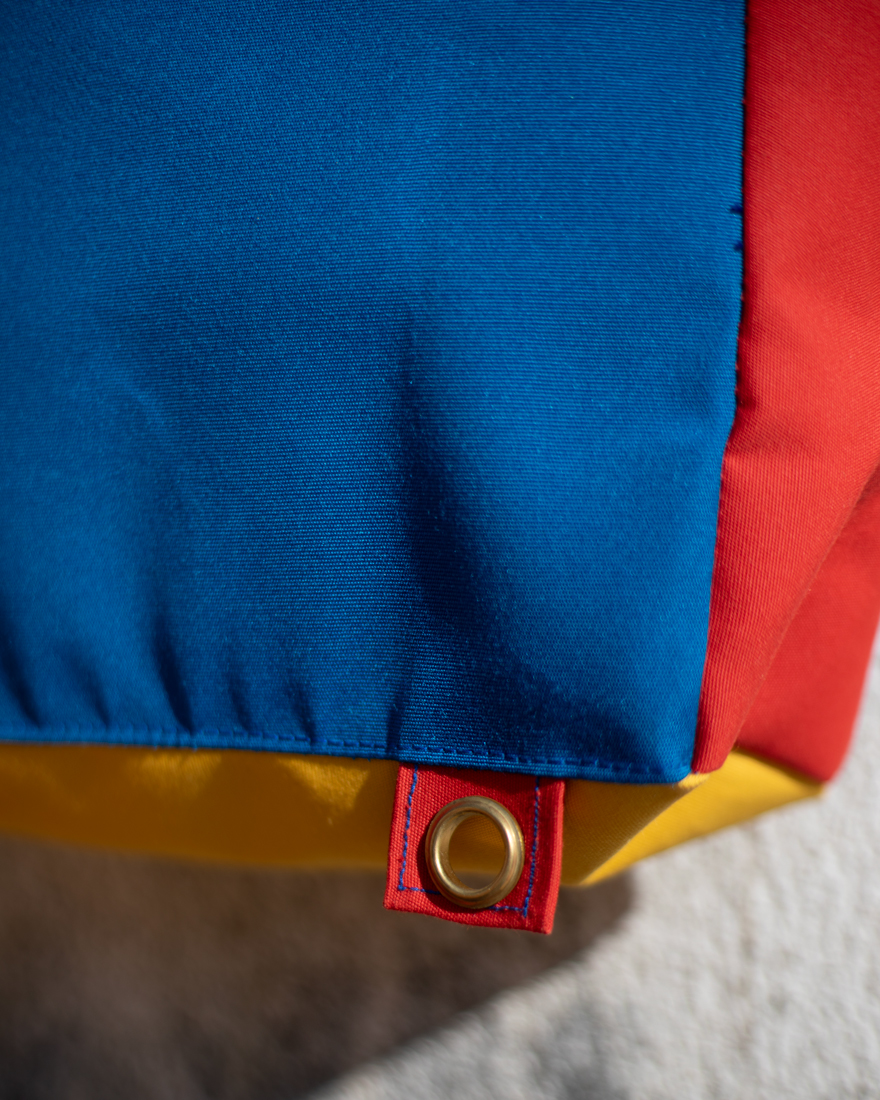 Nuestras mochilas-bolso están hechas a partir de los residuos textiles de una fábrica de toldos, un material resistente, ignífugo e impermeable. Debido al pequeño tamaño de los retales nuestros diseños suelen ser muy limitados, pudiendo realizar hasta cuatro modelos con un mismo tejido. Producimos en talleres del propio barrio donde trabajamos, ofreciendo un salario justo a las costureras con las que colaboramos. Nos esforzamos por ofrecer un producto resistente y duradero, que pueda acompañarte durante muchos años.