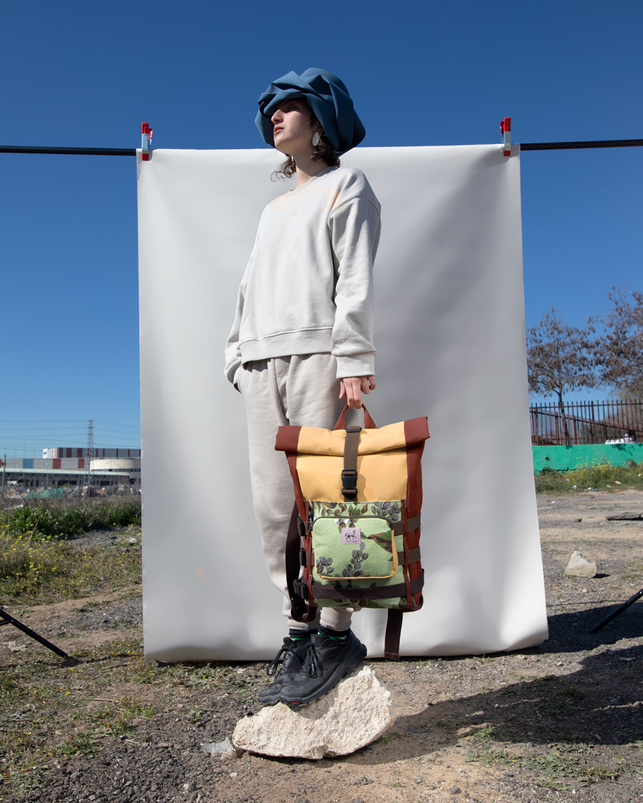 Nuestras mochilas están hechas a partir de los residuos textiles de una fábrica de toldos, un material resistente, ignífugo e impermeable. Debido al pequeño tamaño de los retales nuestros diseños suelen ser muy limitados, pudiendo realizar hasta cuatro modelos con un mismo tejido. Además del tejido de toldo nuestras mochilas llevan un forro resistente también de toldo, hebillas de plástico, correas de nylon o algodón y cremalleras resistentes. Producimos en talleres del propio barrio donde trabajamos, ofreciendo un salario justo a las costureras con las que colaboramos. Nos esforzamos por ofrecer un producto resistente y duradero, que pueda acompañarte durante muchos años.