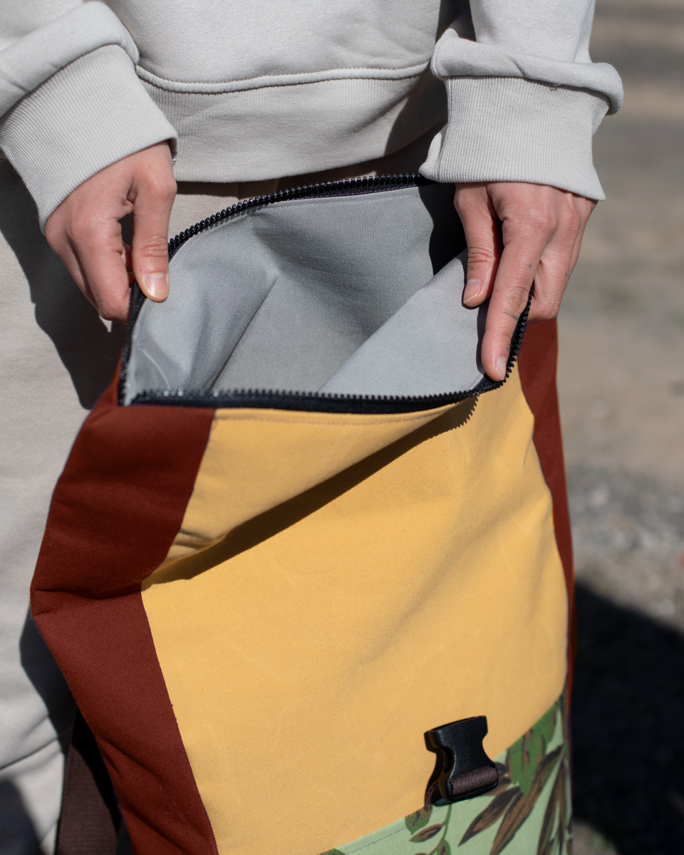 Our backpacks are made from textile waste from an awning factory, a resistant, fire-retardant and waterproof material. Due to the small size of the remnants, our designs are usually very limited, being able to make up limited series with the same fabric. In addition to the awning fabric, our backpacks have a resistant lining, plastic buckles, nylon or cotton straps and resistant zippers. We produce with local workshops, offering a fair salary to the seamstresses with whom we collaborate. We strive to offer a strong and durable product that can accompany you for many years.
