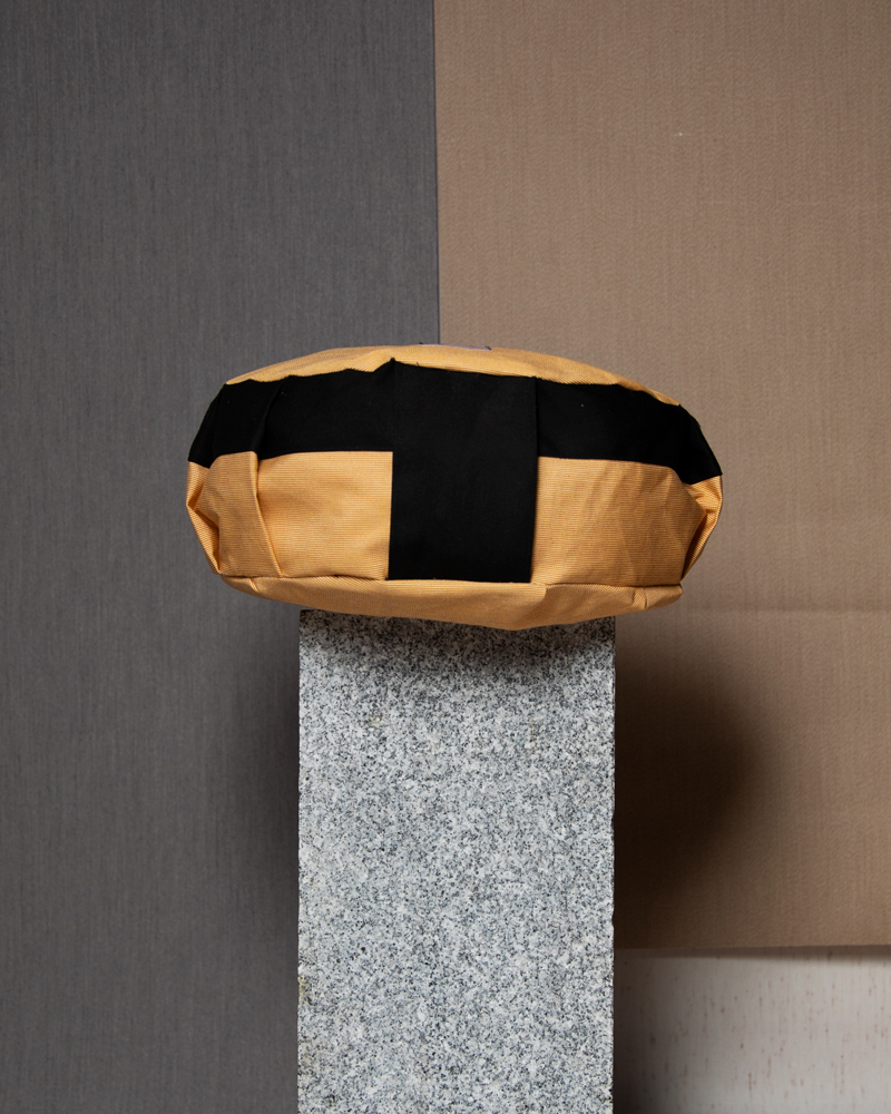 Realizado a partir de tejidos reciclados, provenientes de una fábrica de toldos. Relleno de cáscara espelta, un material con propiedades terapéuticas, de producción ecológica y local. Puedes llevarlo cruzado como un bolso gracias a su correa regulable realizada en yute, una fibra vegetal 100% natural, ecológica, biodegradable, reutilizable y reciclable.