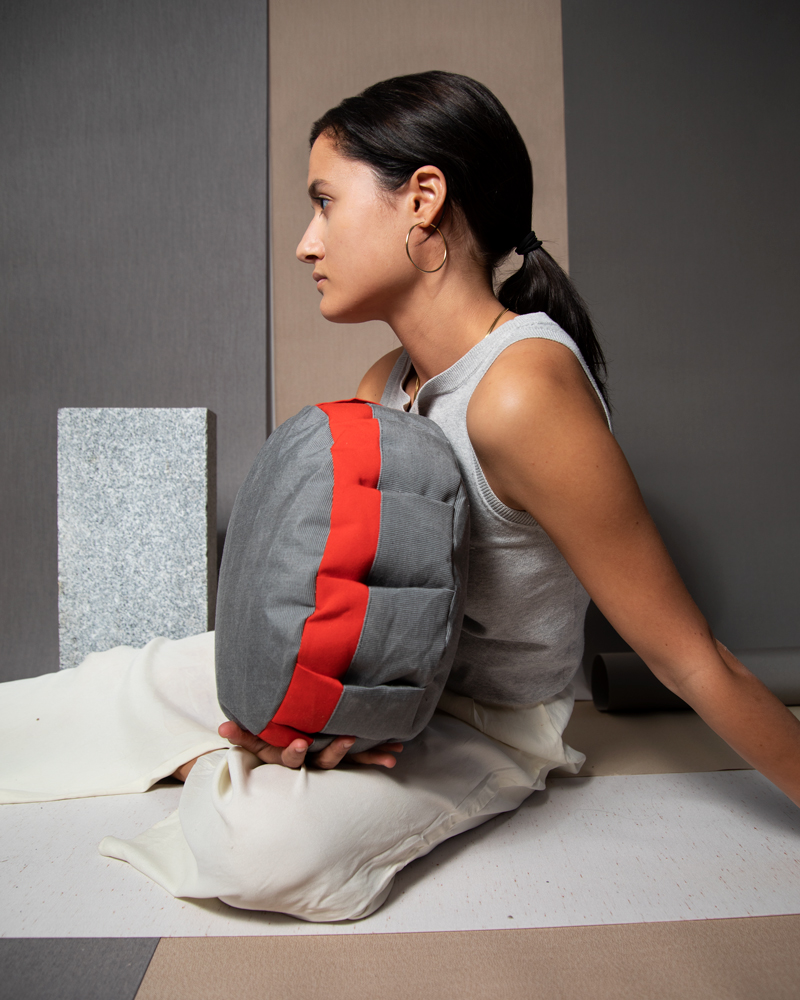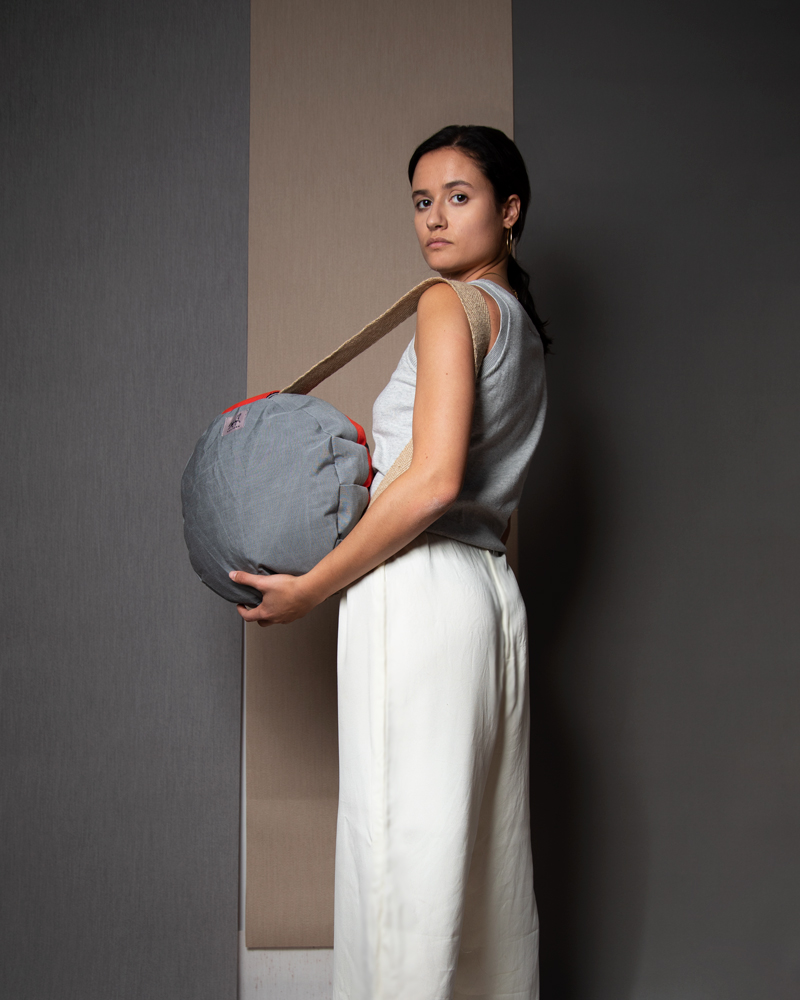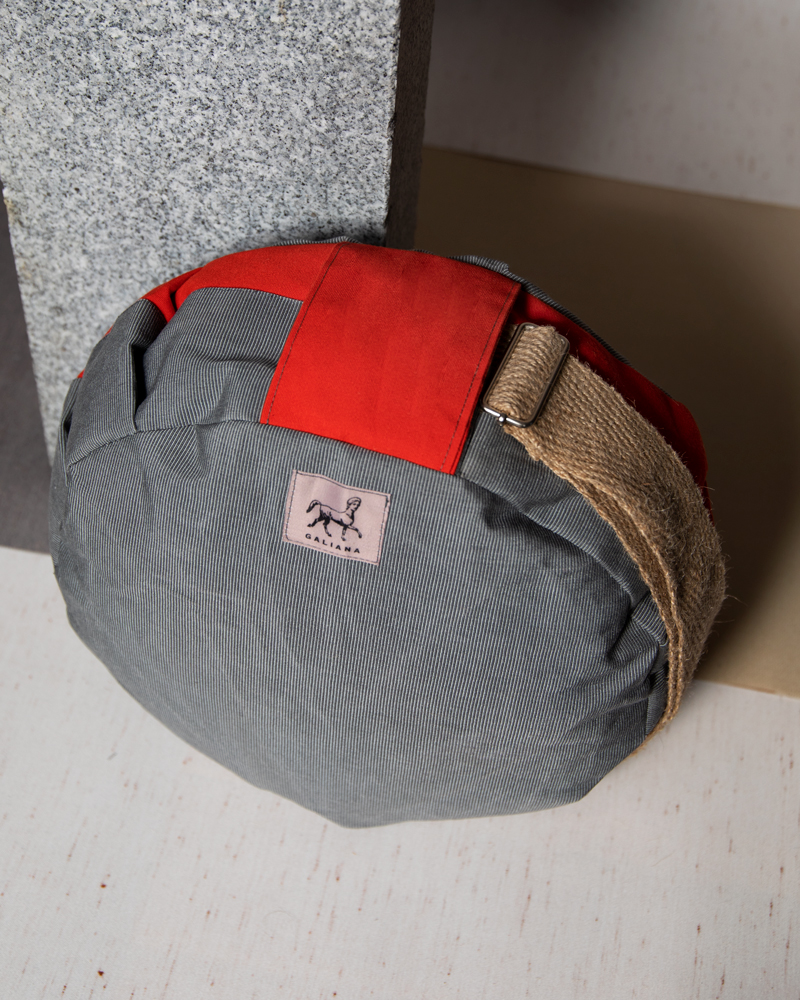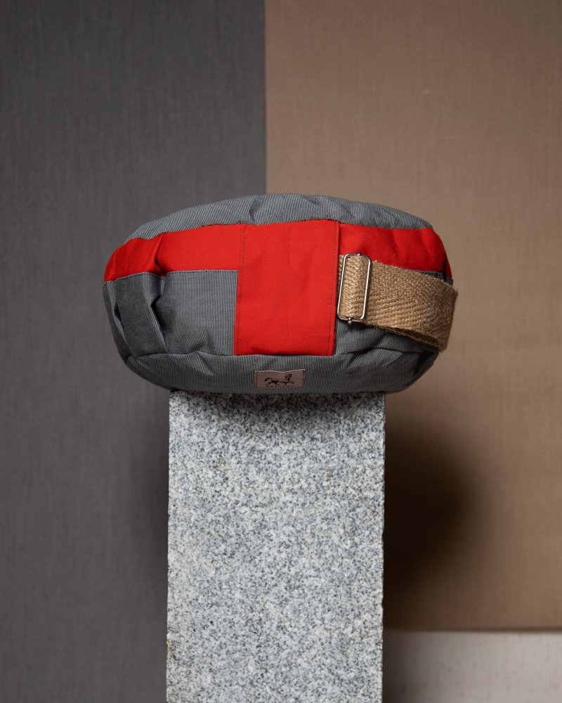 Realizado a partir de tejidos reciclados, provenientes de una f谩brica de toldos. Relleno de c谩scara espelta, un material con propiedades terap茅uticas, de producci贸n ecol贸gica y local.聽Puedes llevarlo cruzado como un bolso gracias a su correa regulable realizada en yute, una fibra vegetal 100% natural, ecol贸gica, biodegradable, reutilizable y reciclable.