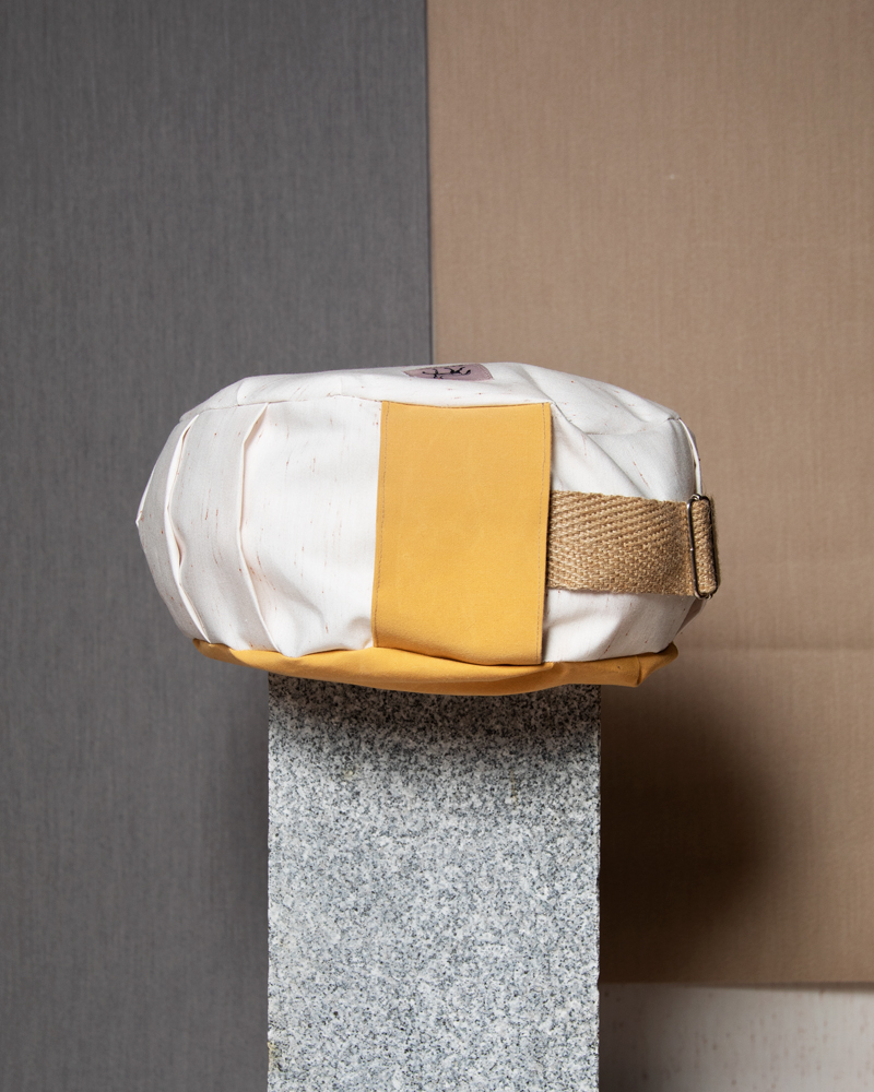 Realizado a partir de tejidos reciclados, provenientes de una f谩brica de toldos. Relleno de c谩scara espelta, un material con propiedades terap茅uticas, de producci贸n ecol贸gica y local.聽Puedes llevarlo cruzado como un bolso gracias a su correa regulable realizada en yute, una fibra vegetal 100% natural, ecol贸gica, biodegradable, reutilizable y reciclable.